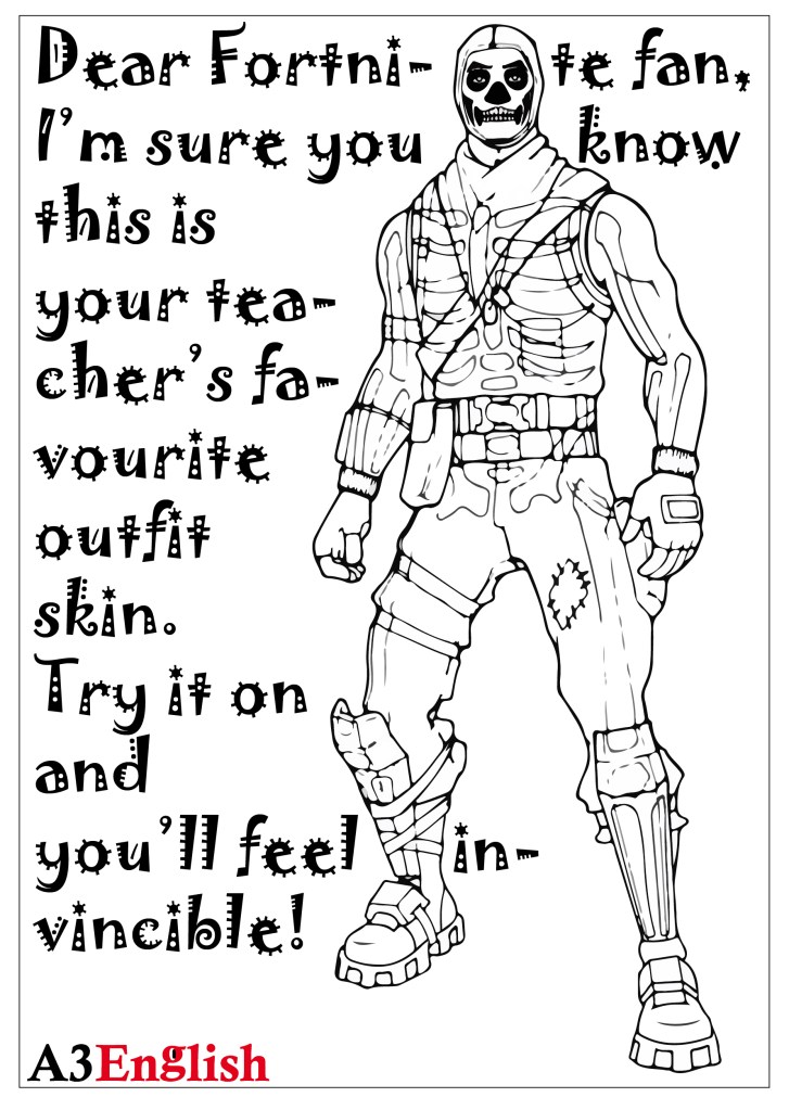 October 21, 2020October 21, 2020rurikrossimanuzzatoLeave a Comment on Game Character 152 Game Character 152 Colouring Exercise Skull Trooper Share this: Share on X (Opens in new window) X Share on Facebook (Opens in new window) Facebook Like Loading...